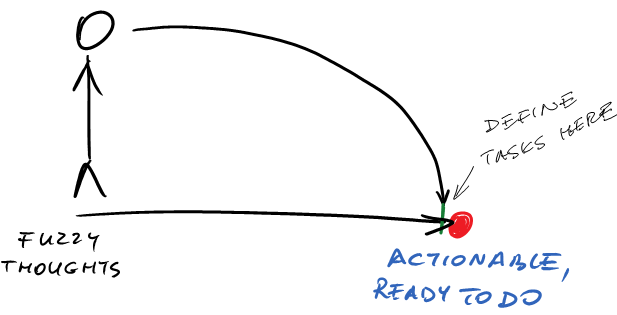 When I start working on a project I write down some general epics, stories, goals. But I never start working on them unless I write down at least one actionable task. In fact one actionable task is the minimum you need. Ok, I do mistakes and sometimes I take a task which is too general to accomplish it and then I always fail. The only rescue is tasks chunking.
